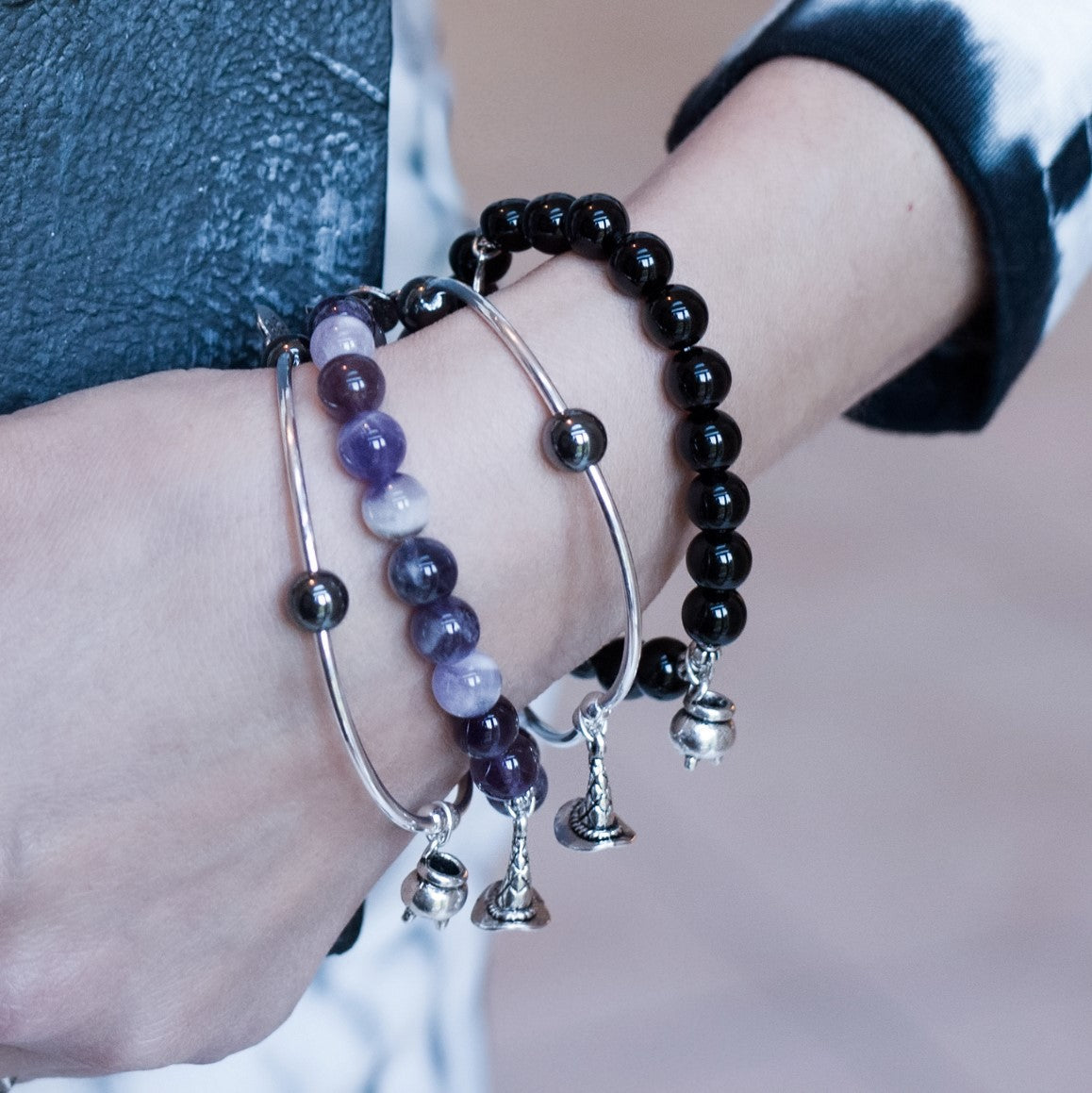 Witch Hat | Stone Beaded Charm Bracelet | Amethyst - Inspiration
