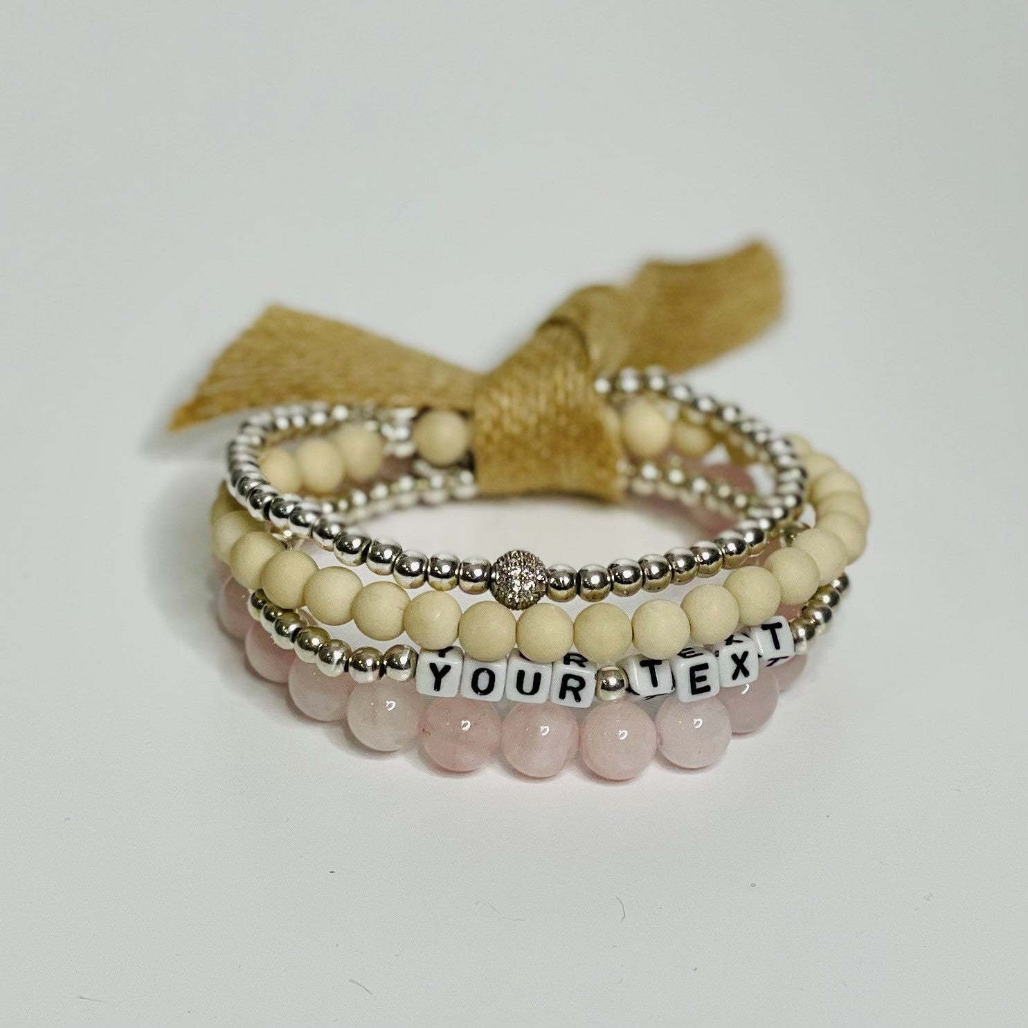 Custom Name Stack Luxe - Rose Quartz + Sterling Silver
